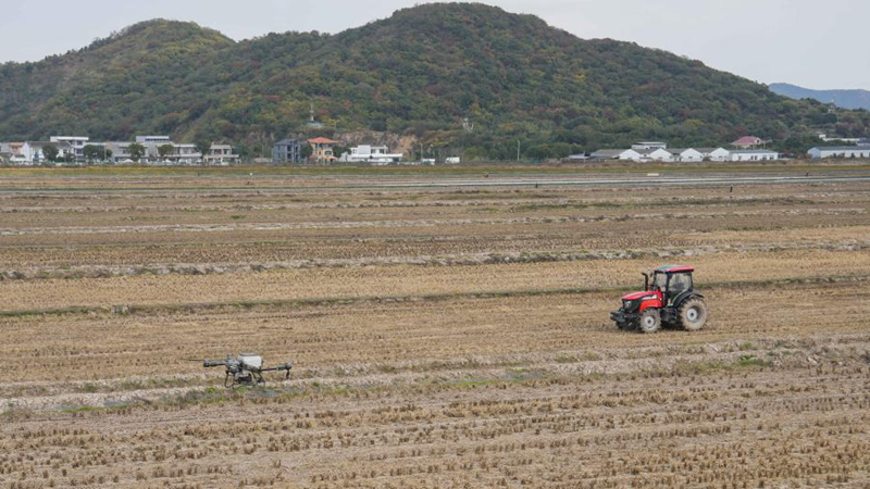 眼下,園區(qū)正在準(zhǔn)備播種冬小麥。周理達(dá)輕點(diǎn)手中的設(shè)備屏幕,遠(yuǎn)處田野中的一輛無人駕駛智能拖拉機(jī)便開啟了自主作業(yè)。“昨天我已經(jīng)為它設(shè)定好了地塊,今天它就能自動(dòng)開展滅茬、旋耕等作業(yè)。”
